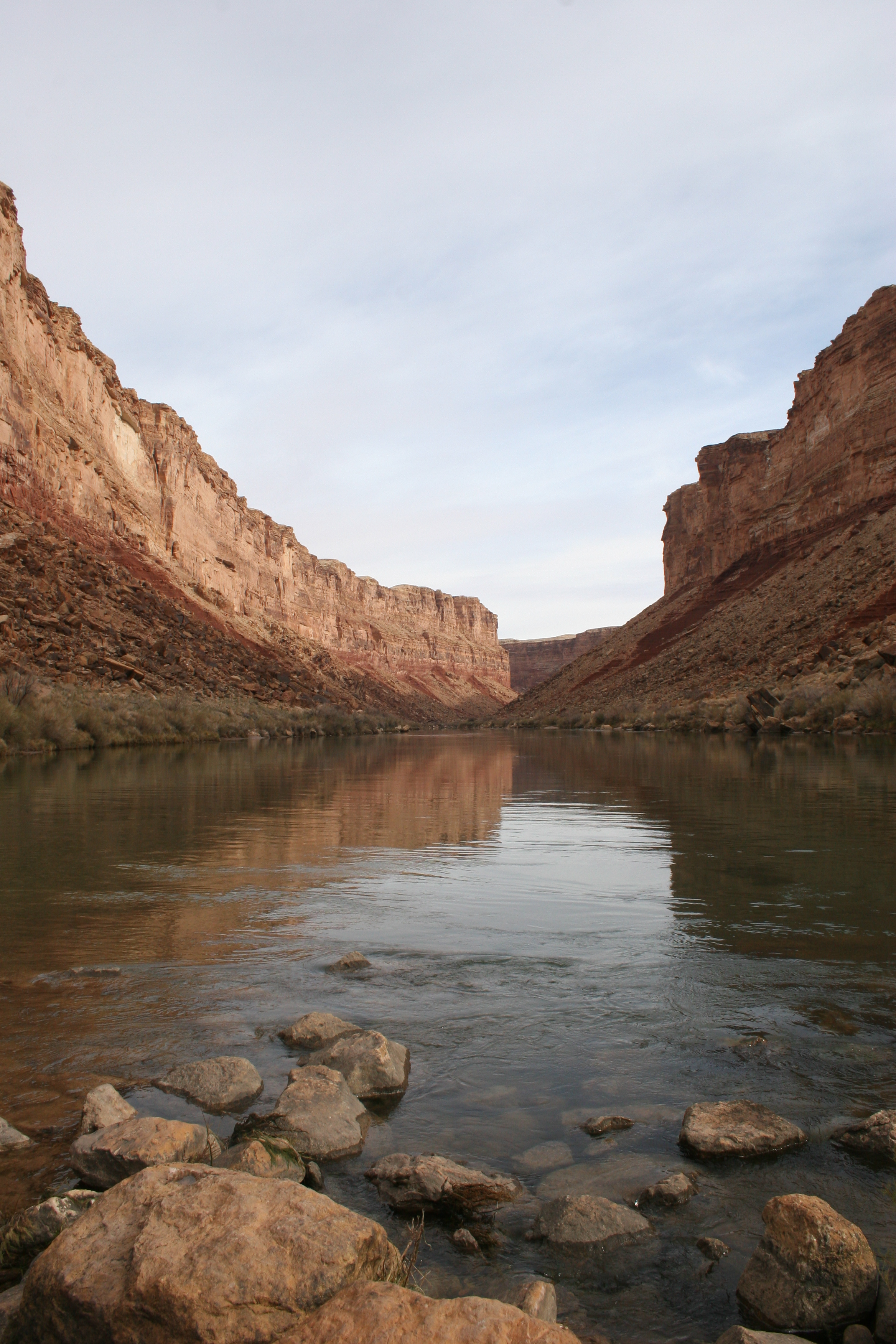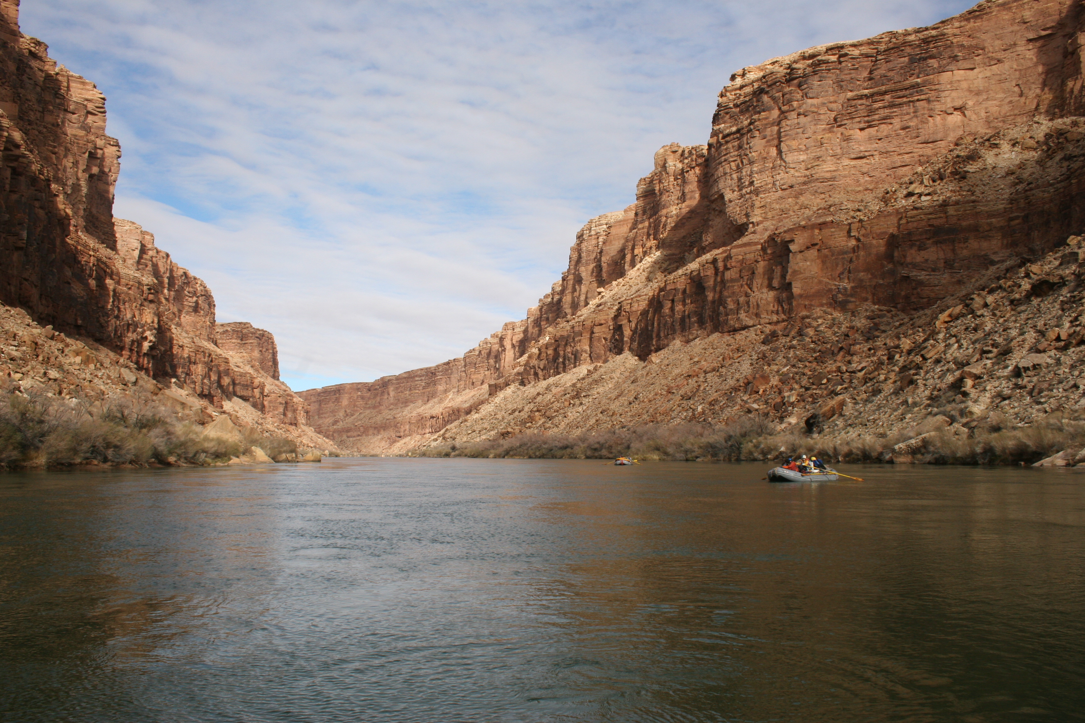 ^ The milky water of the Little Colorado at its confluence with the main river. The sediments in the joining stream change the chemical makeup of the river from this point onwards. One consequence is that there are no fish to be found downstream of here. Last chance for a fish supper.