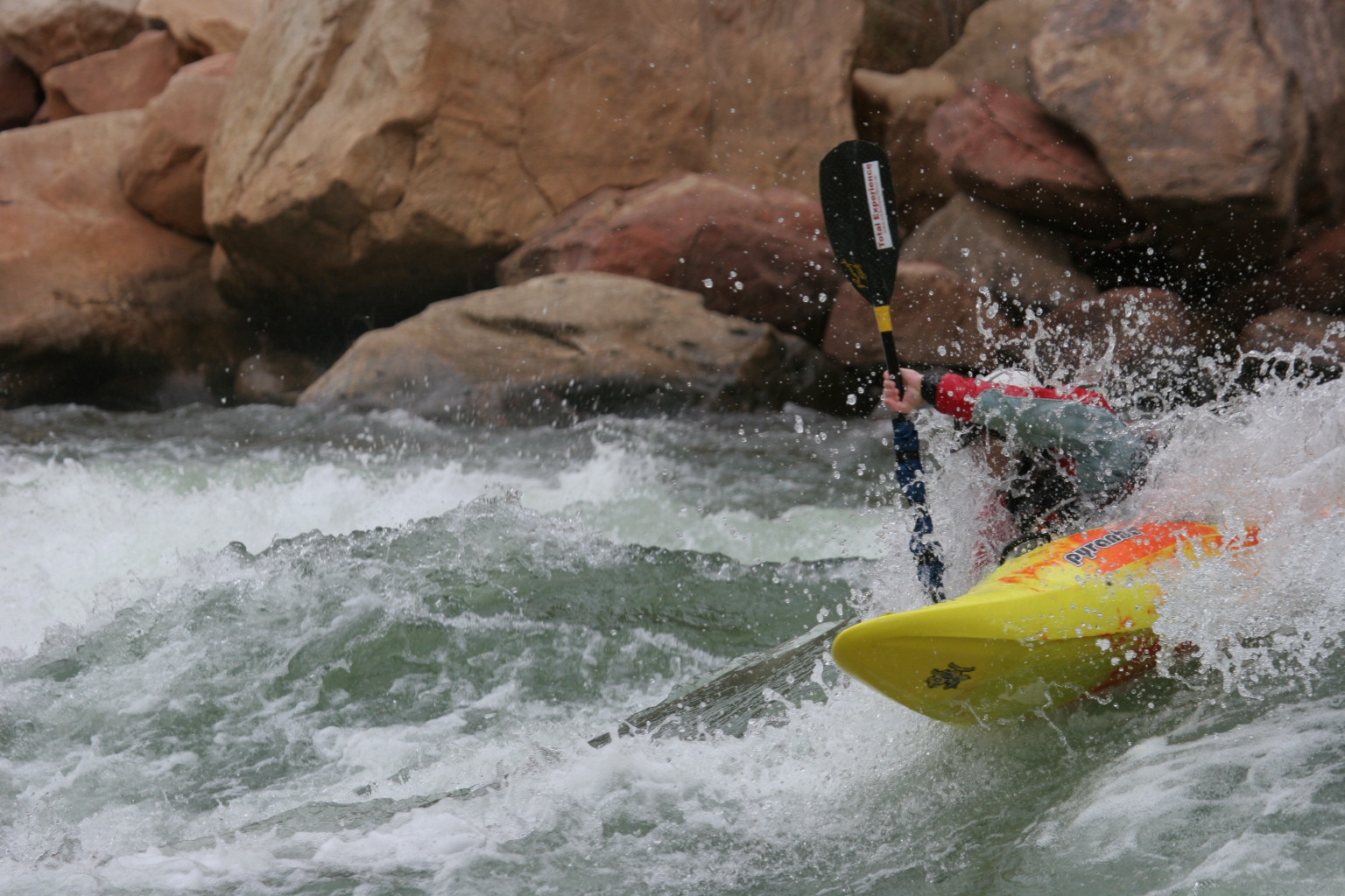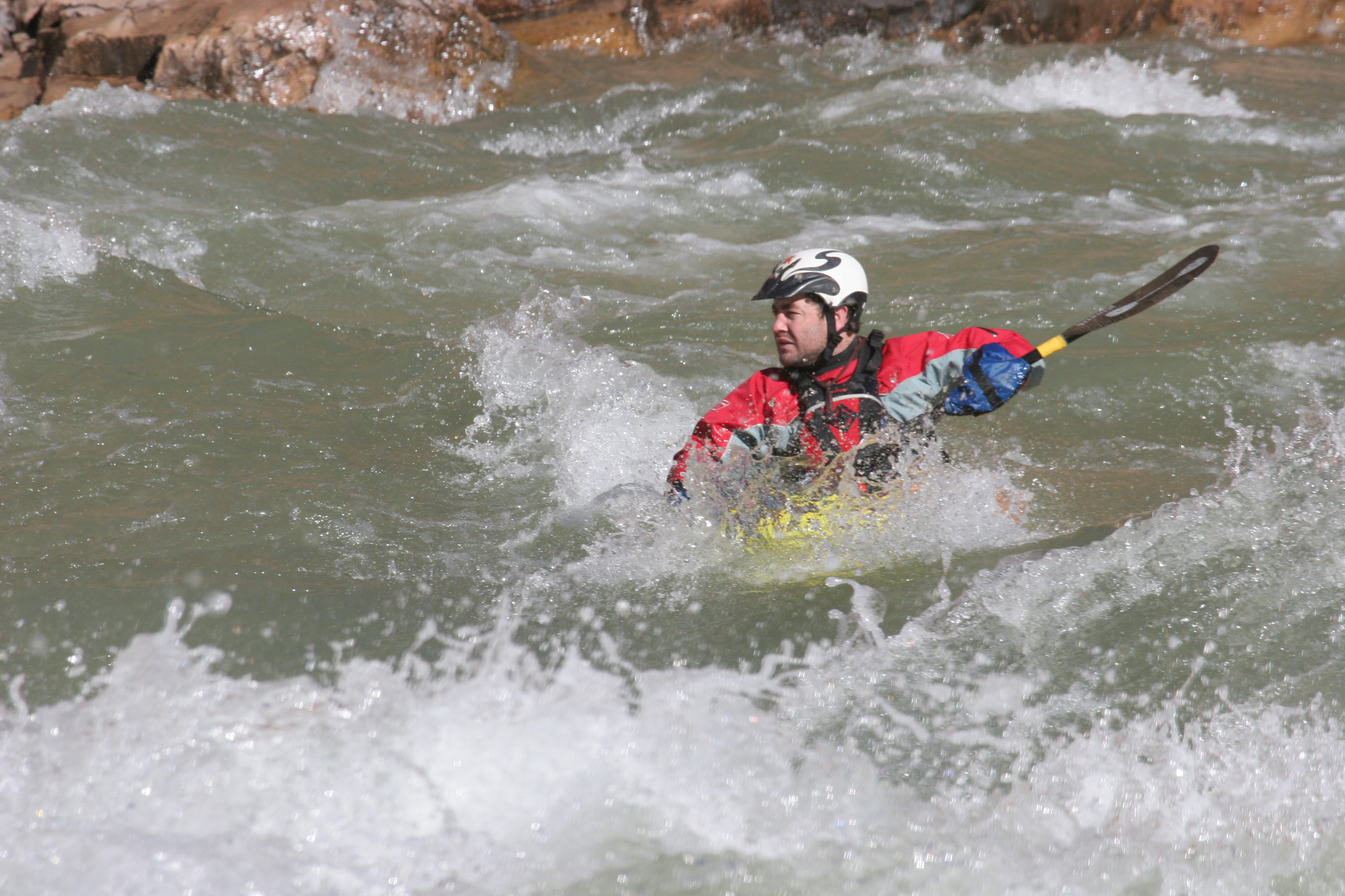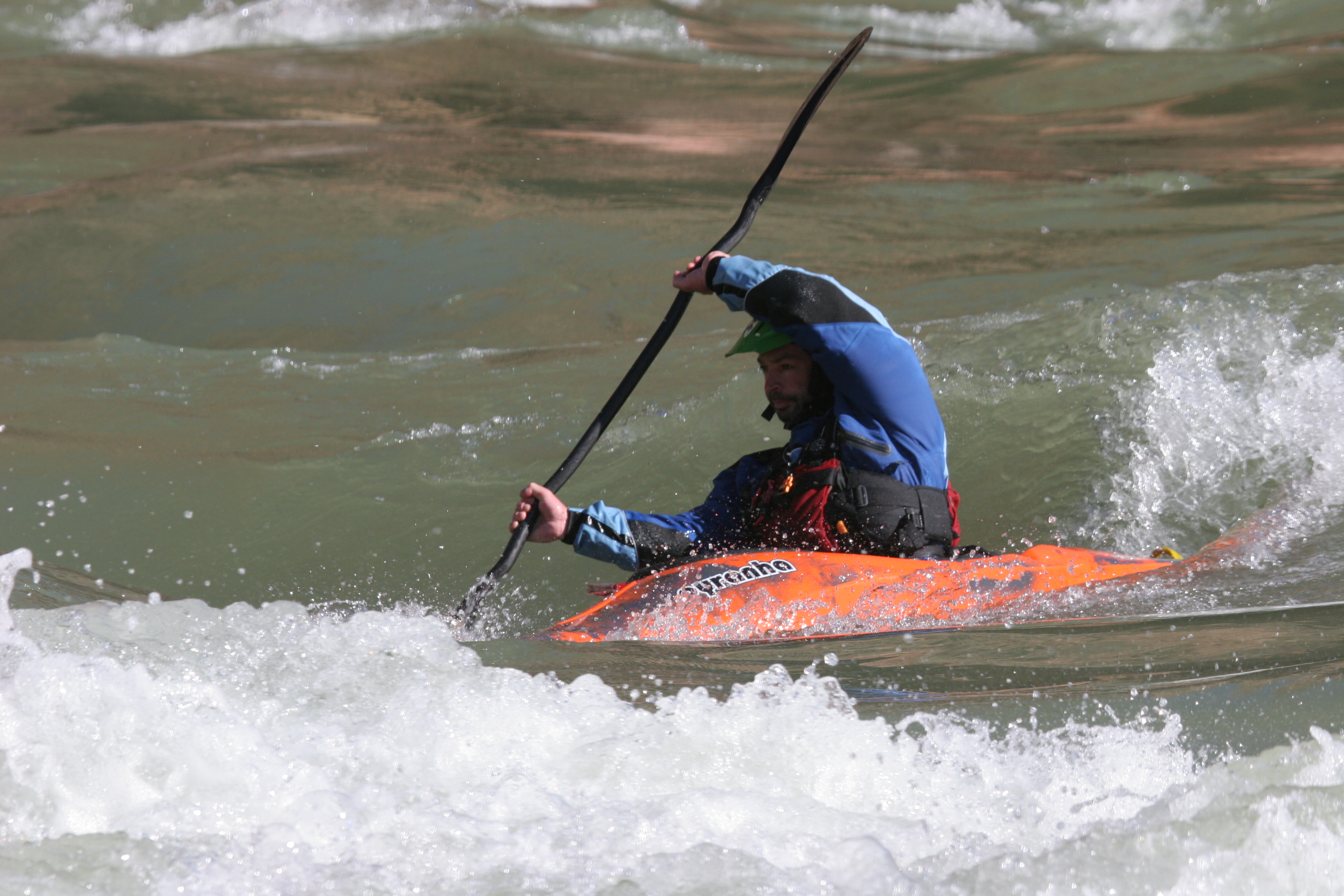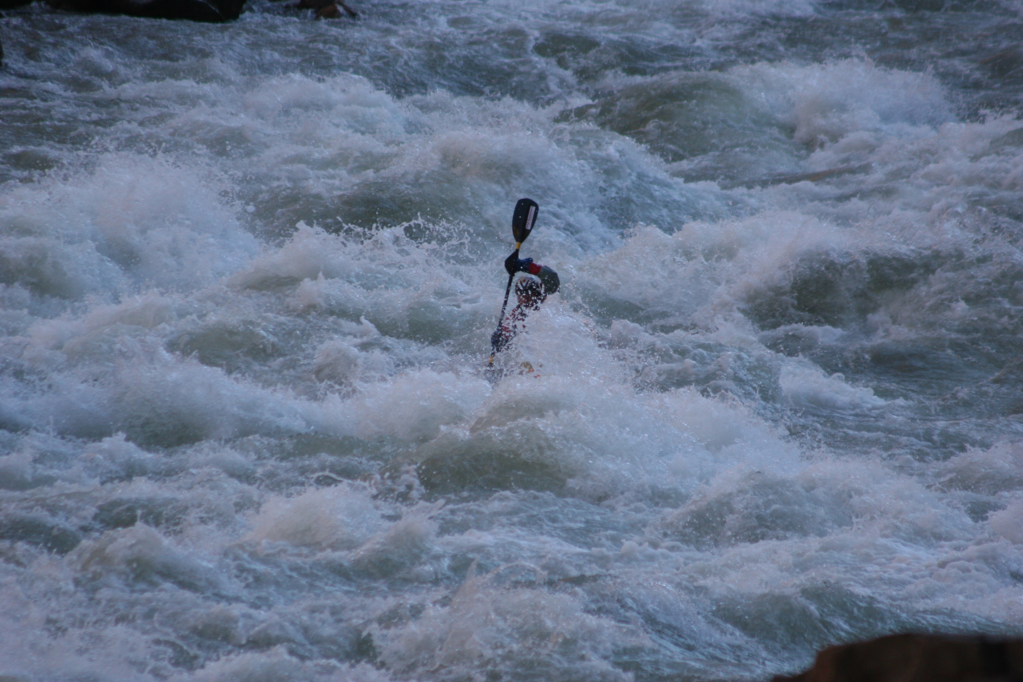 ^ Kipper paddles hard - All the good kayaking shots are of Kipper, probably because he paddles in a new school style - all vertical paddle action and aggressive forward-leaning posture. The rest of us are old school; we don't do vertical or aggressive.