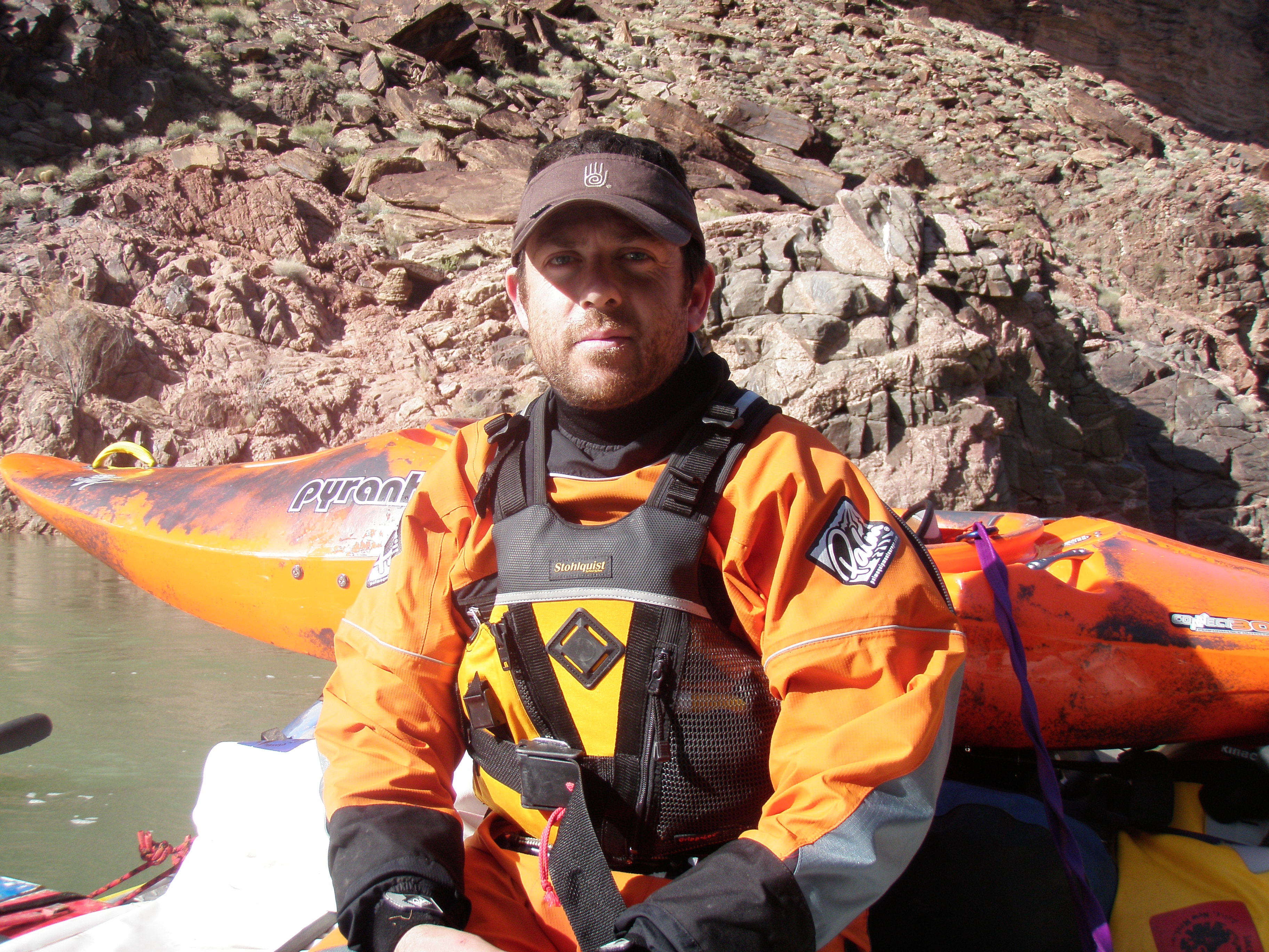 ^ Solo boater - Taylor was running the river solo and intending to spend 25 days in the canyon; for a change of pace he elected to hang out with us for a few days. Of necessity, he was travelling light and had no beer. We swapped him some cans in return for some of his, eh, exotic tobacco, for which we found space in one of our cakes.