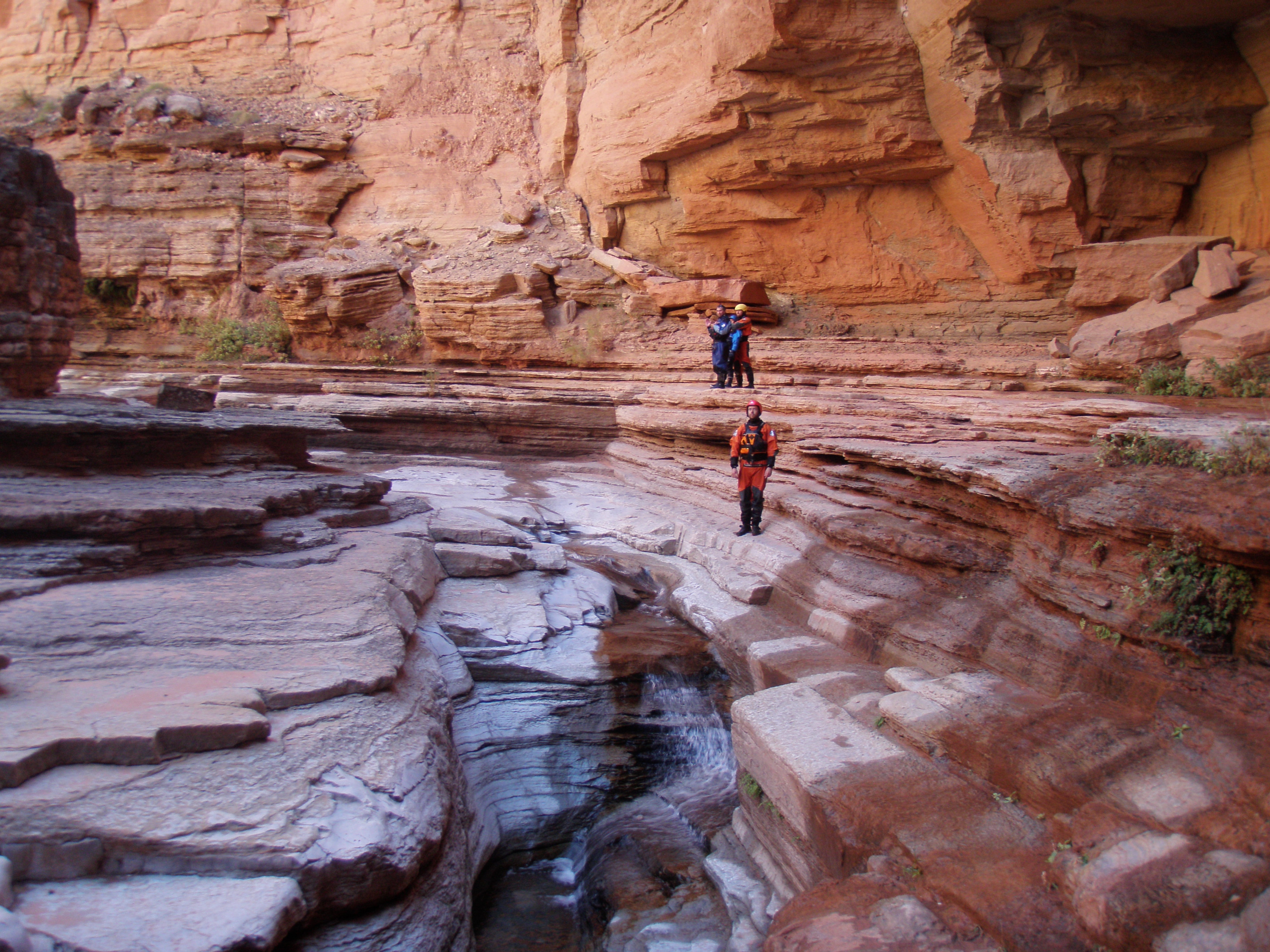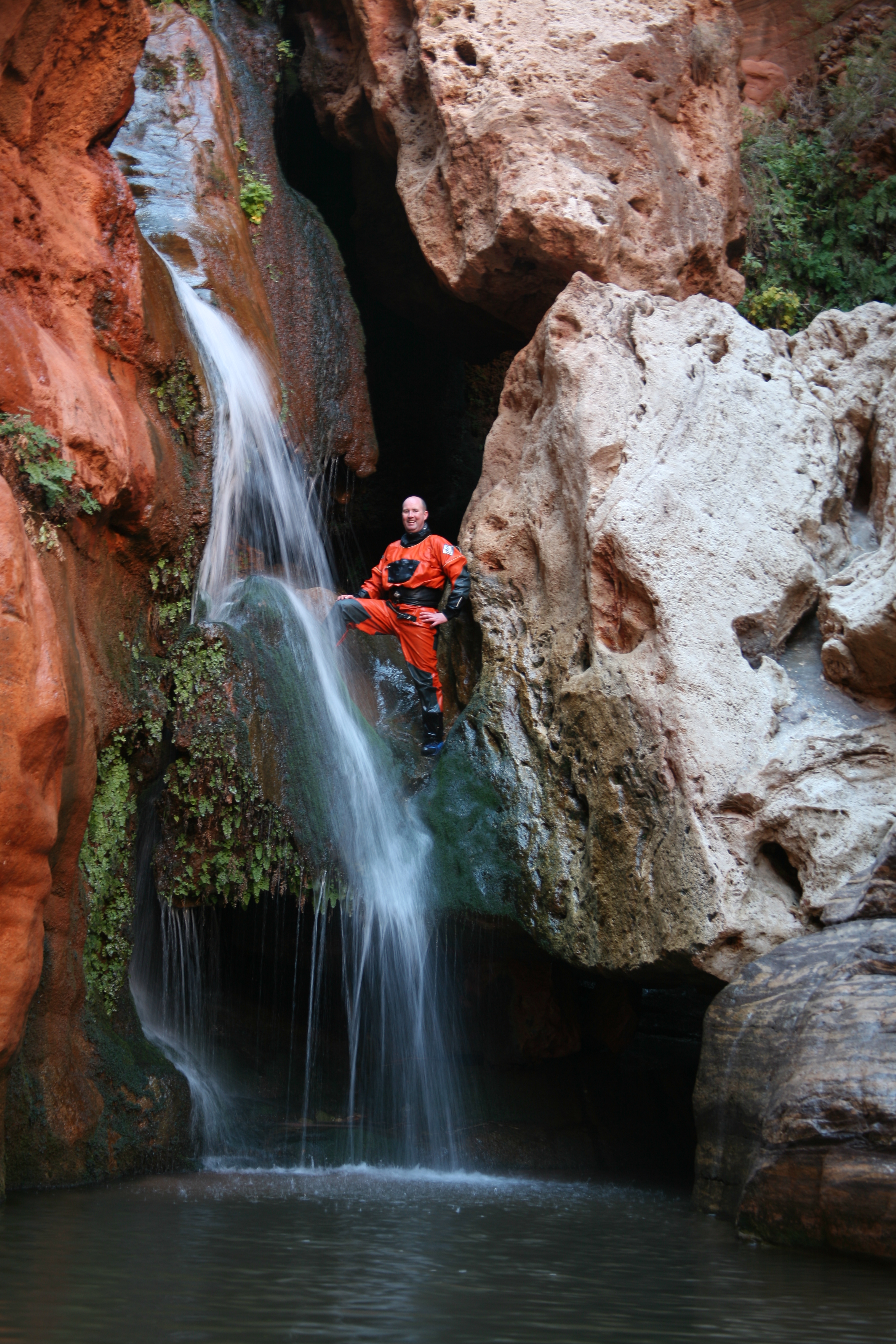 ^ Donnie poses - A stream comes in at one of the side canyons. Despite the arid environment of the desert, a constant supply of water in places like this provides opportunity for plants to grow.