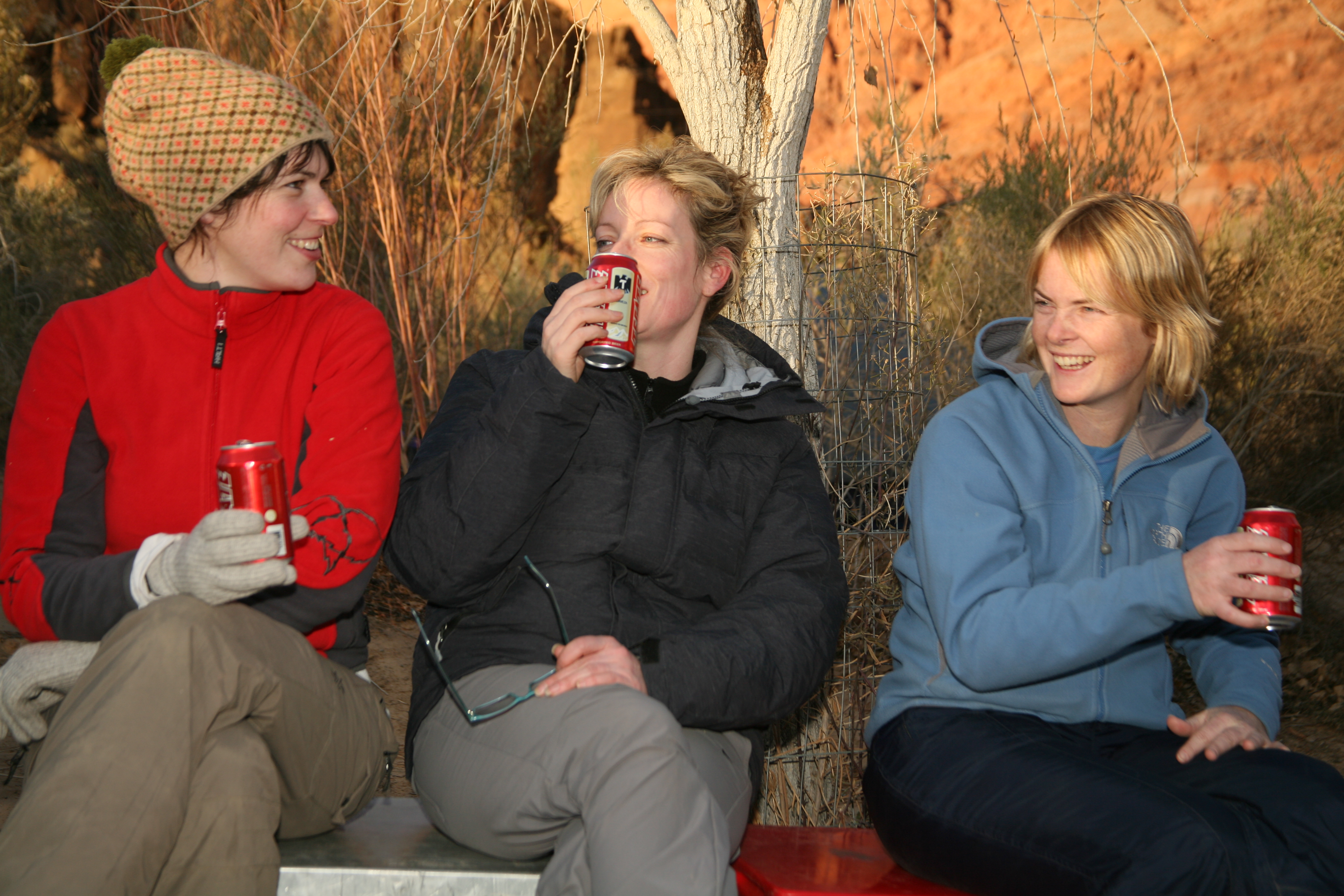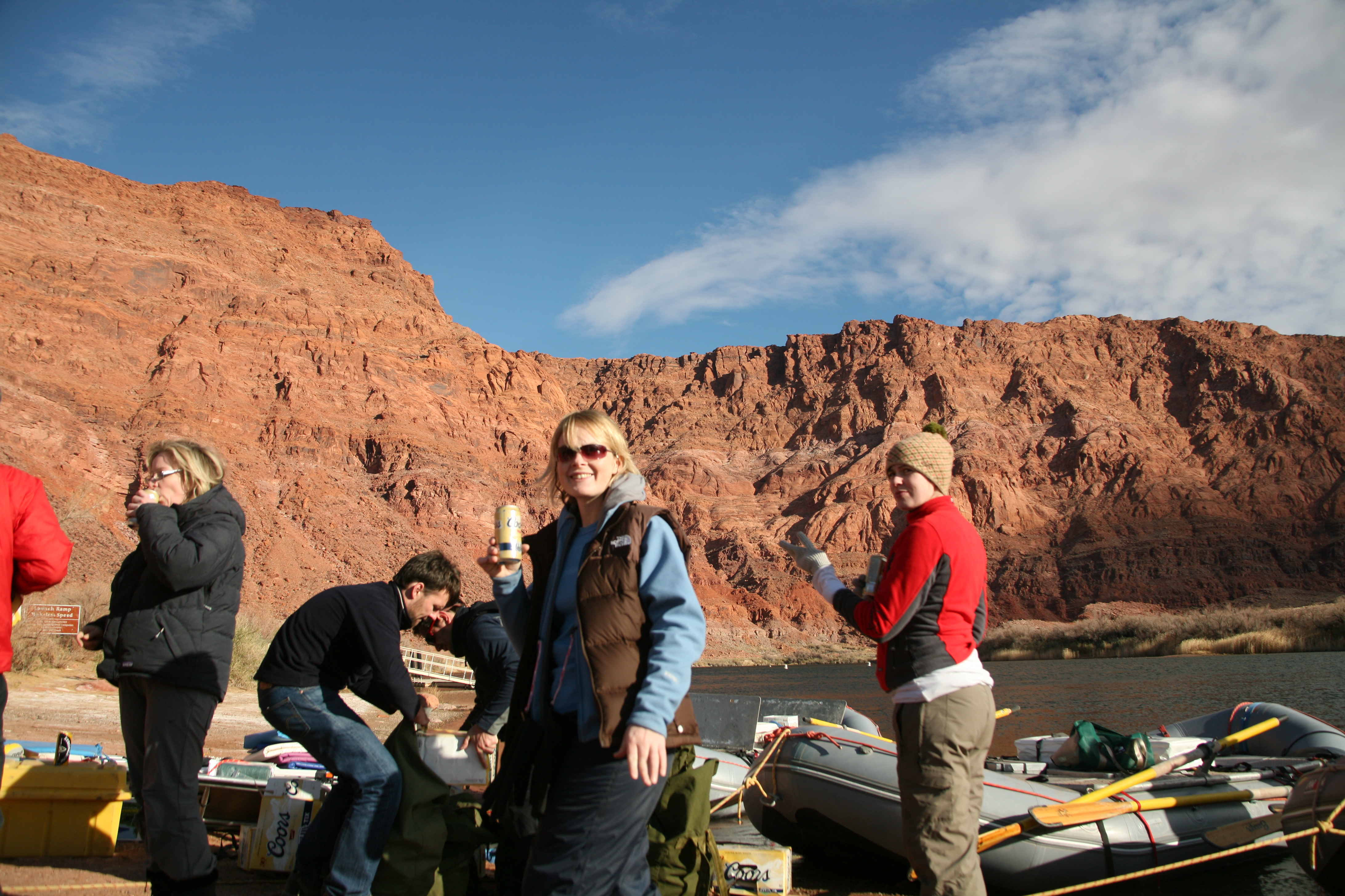 ^ Ladies - Dearbhail, Karen, and Angie having a laugh and a beer at Lee's Ferry before we set off. Loading 3,000 cans of beer is thirsty work.