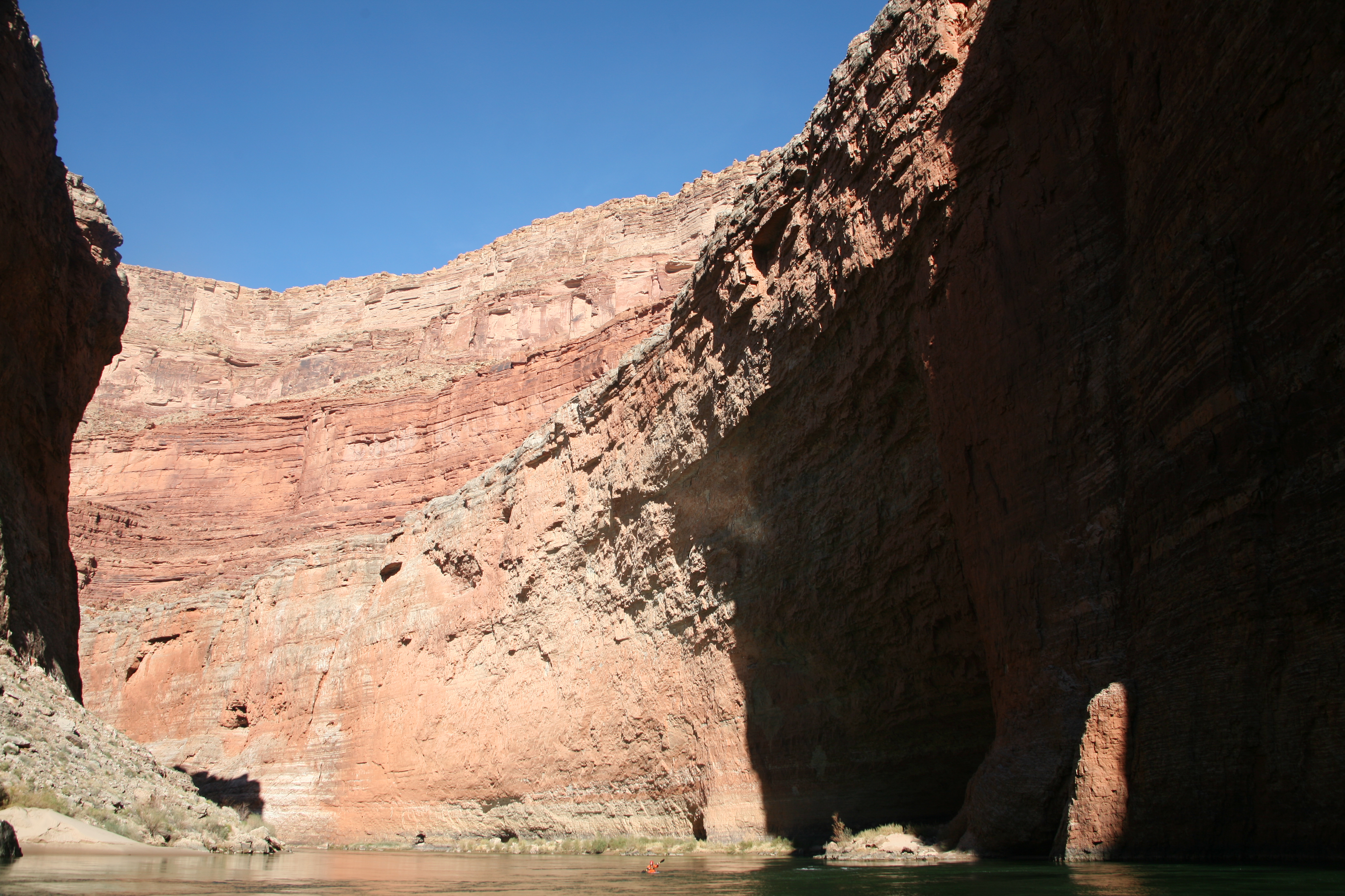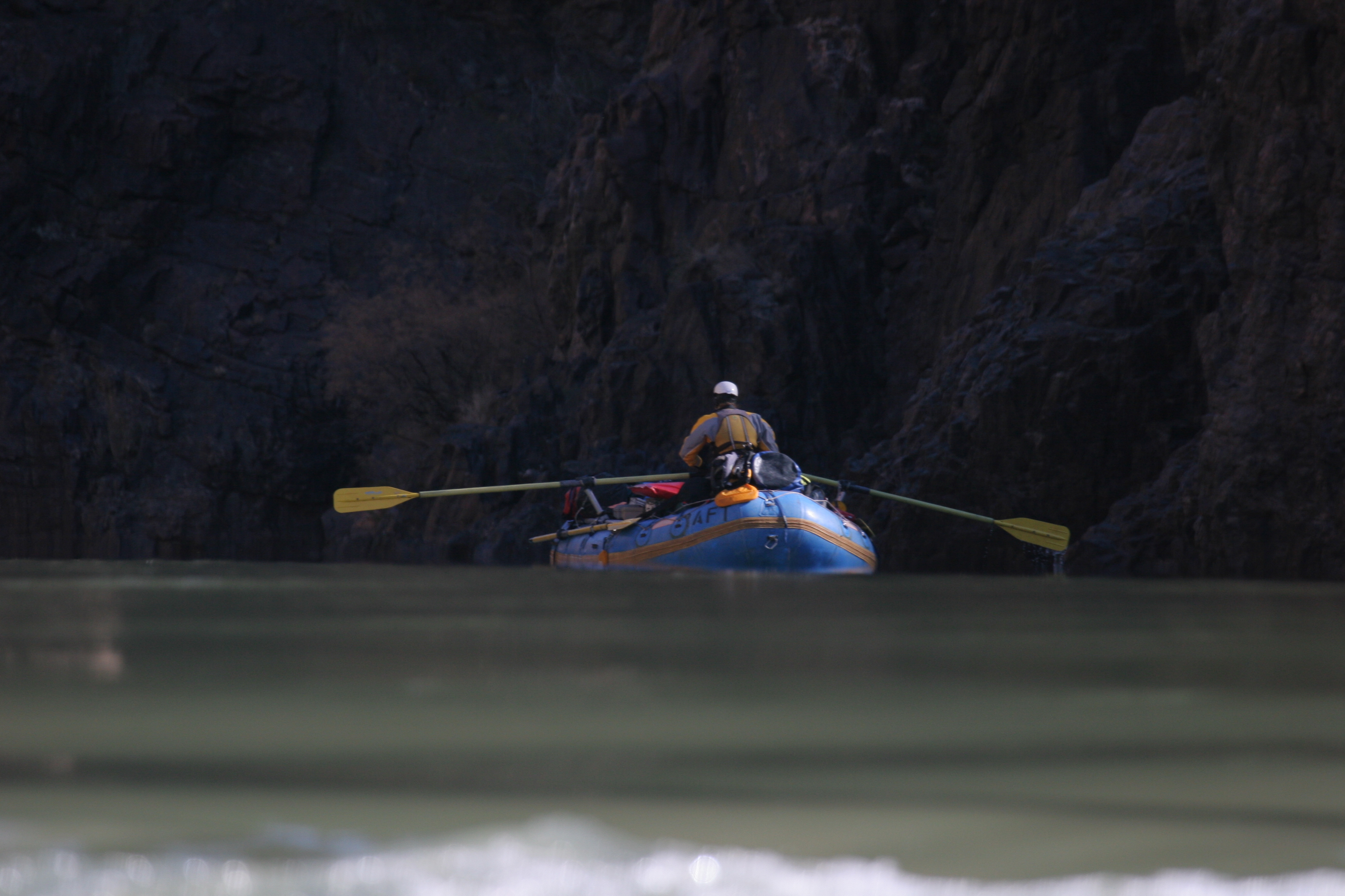 ^ Rock wall - This is a fairly typical section of canyon, although the wall colour changes greatly depending on what the rock strata is at that spot. The river meanders constantly and you're always rowing towards a slow bend. It draws you on.