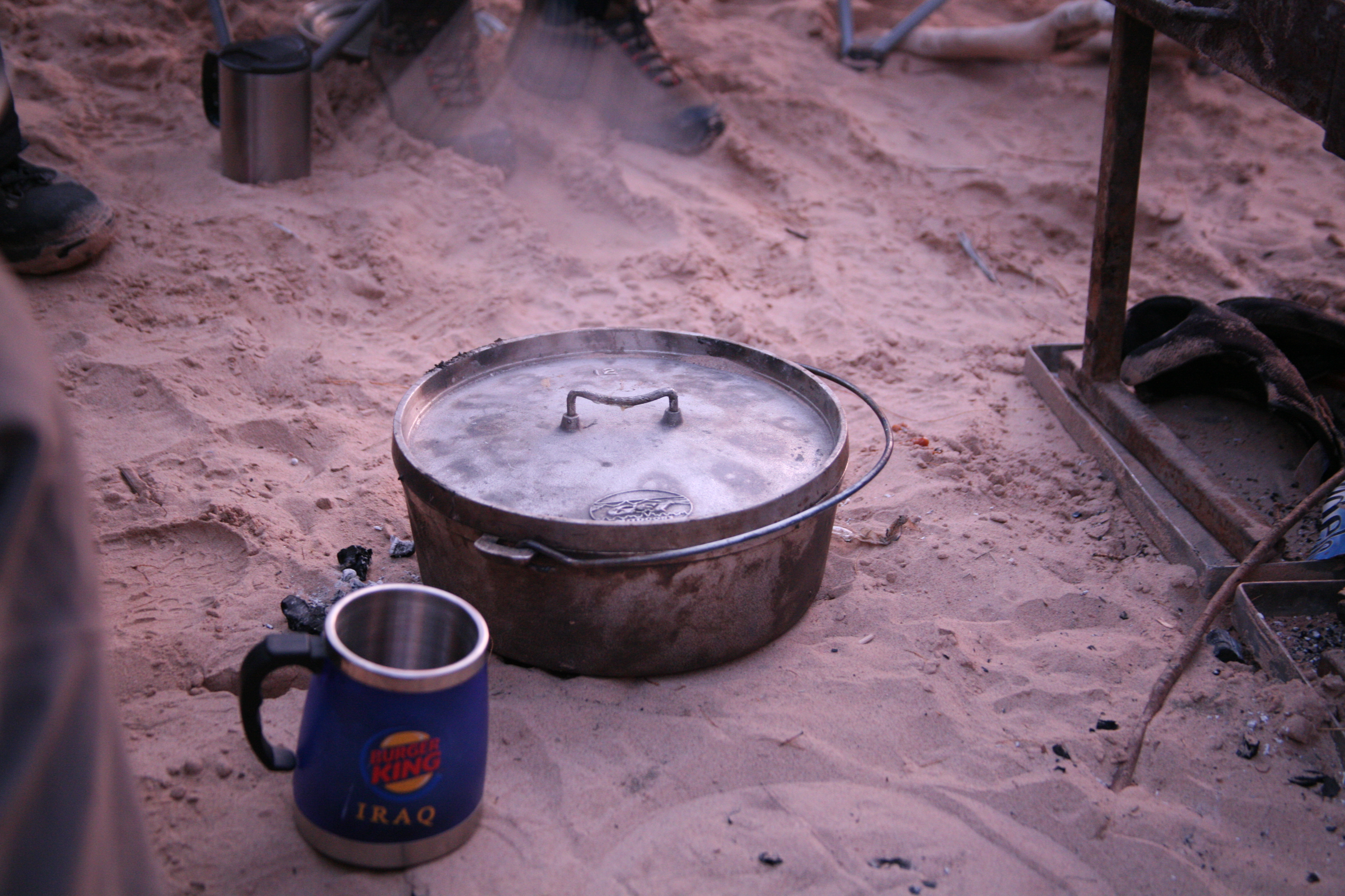 ^ Cooking pot - A pair of Dutch Ovens like the one shown here were used variously for cooking Chicken Kiev and baking sponge cake. We ate well on this trip, thanks to American quantities of snacks and catering supplies.