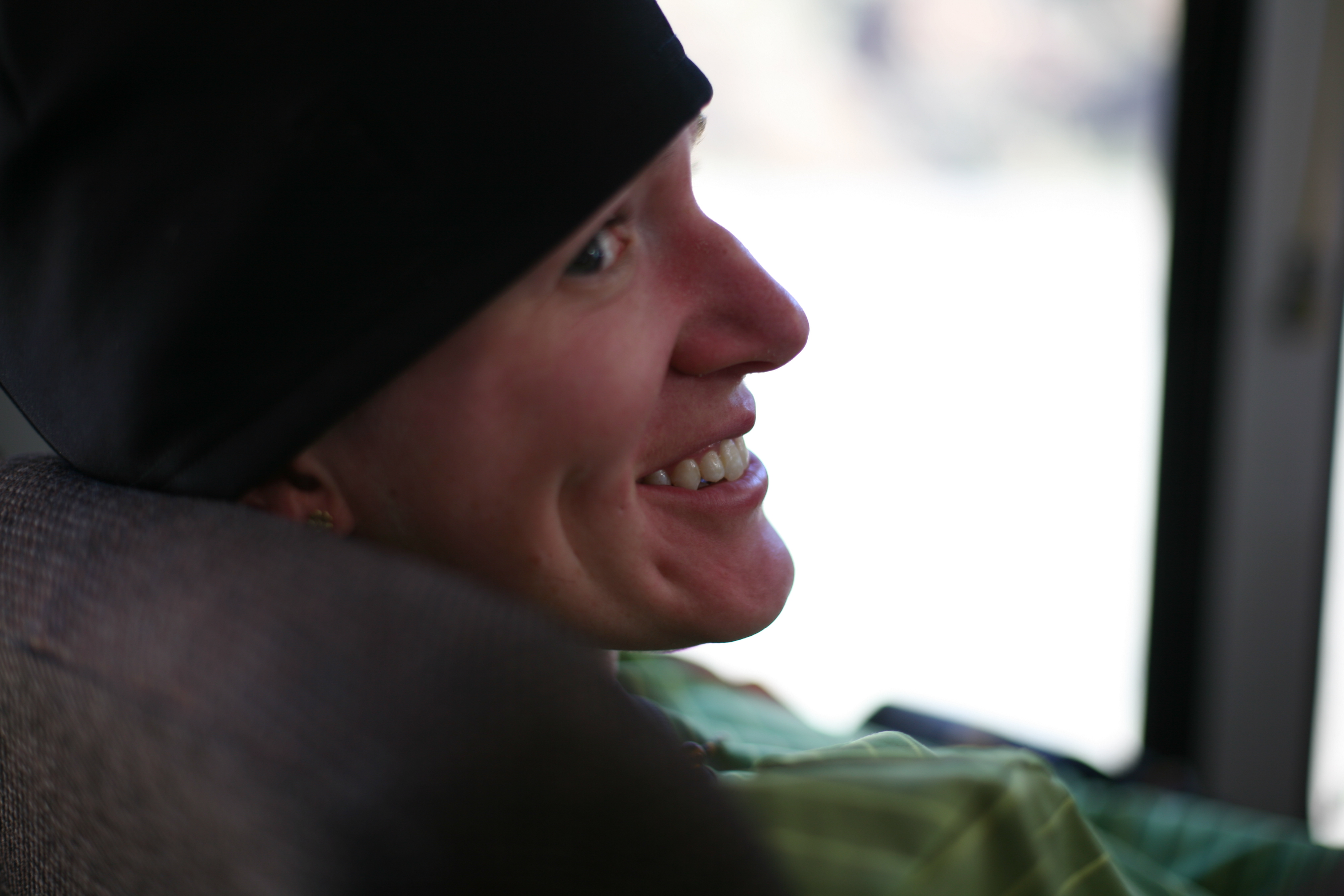 ^ Lorna on the bus - On the bus out from Diamond Creek, Lorna looks relaxed.