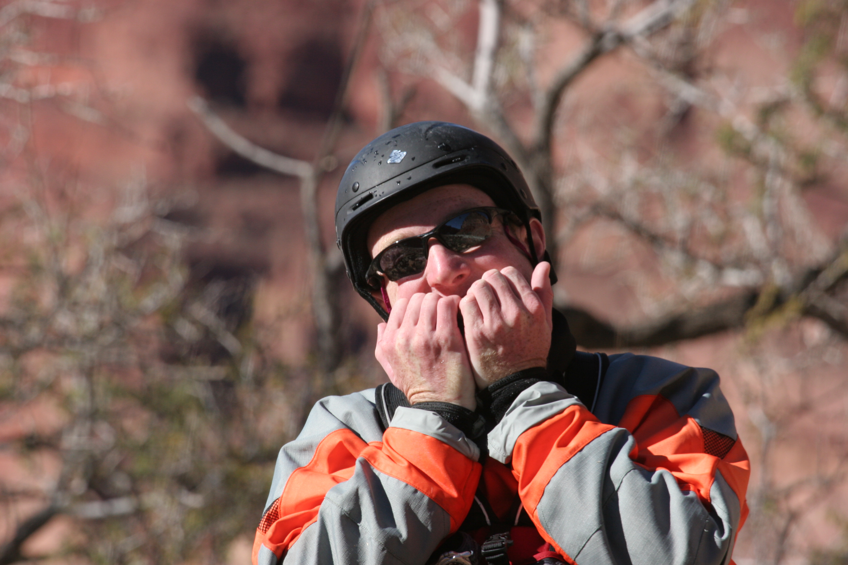^ Bren prepares - Above Lava Rapid, Bren shows the fear, or maybe he's just warming his hands.