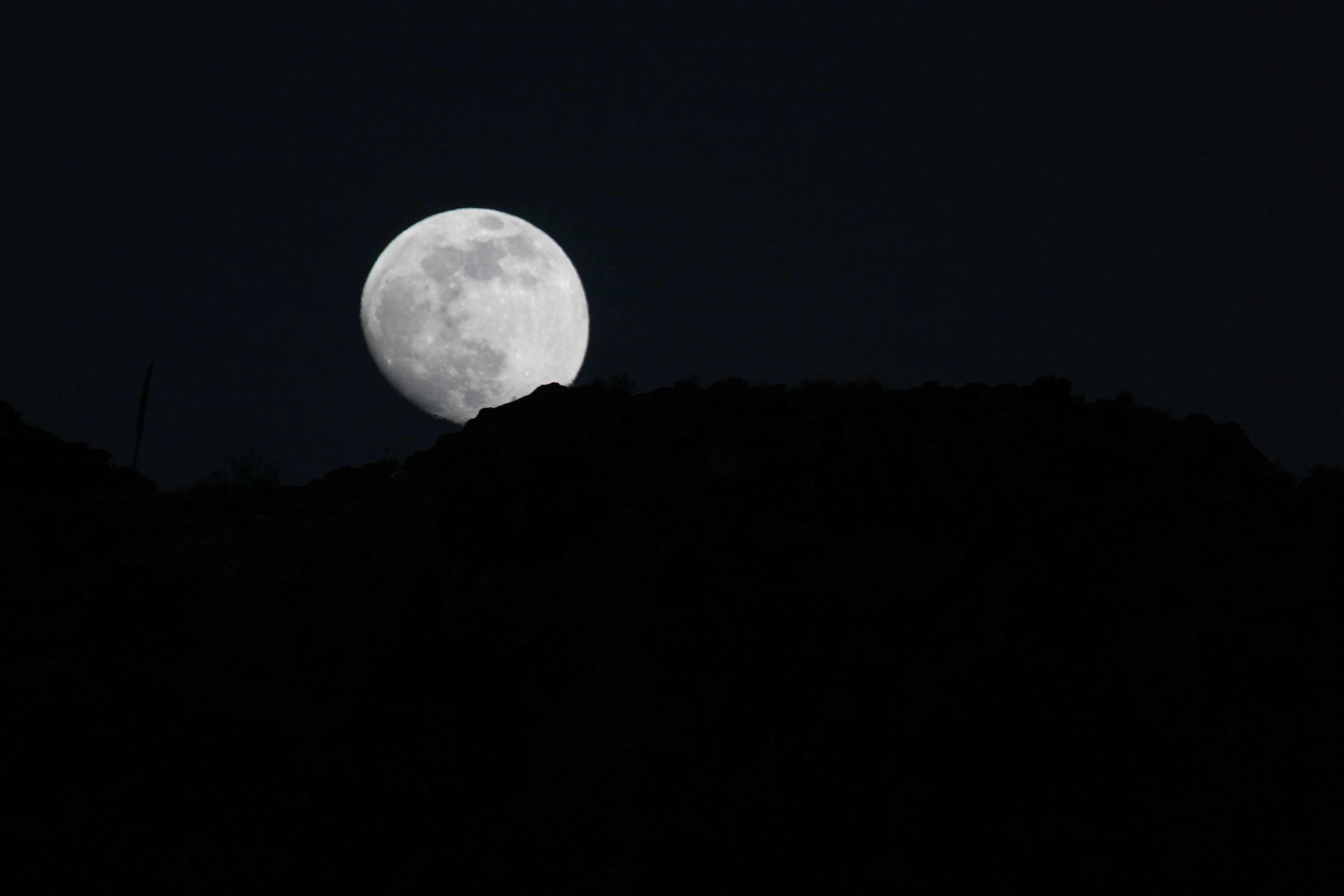 ^ Moon - The moon rises over the bluff on a typically cloudless night. In the darkness of the deep canyon, the moonrise was always dramatic