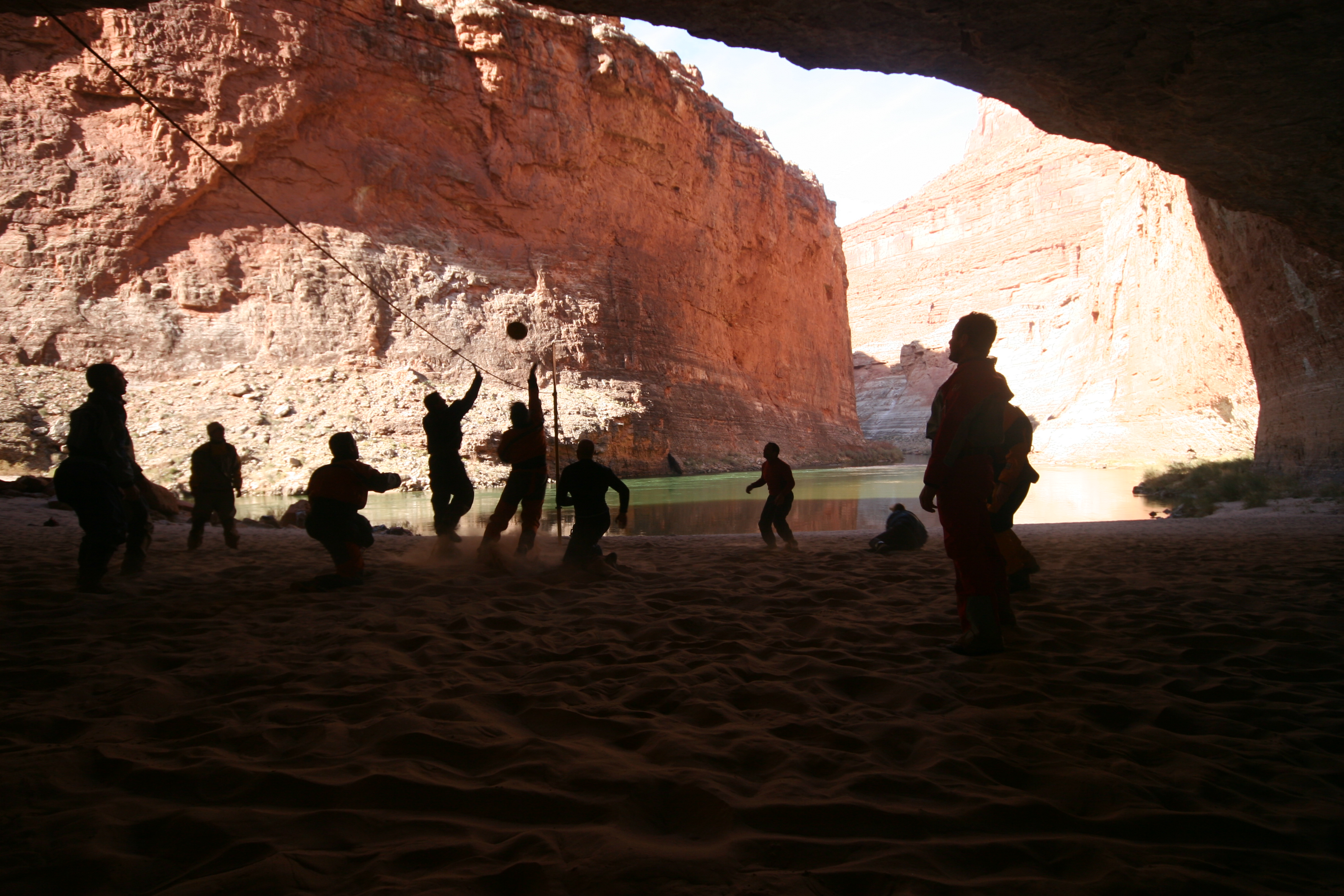 ^ Volleyball in the cave - We didn't have an orchestra to fit in the huge cave, so we set up a volleyball court instead, using two oars and a safety rope. We played a lot of evening volleyball on this trip.